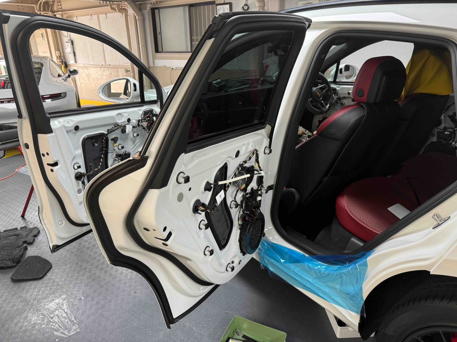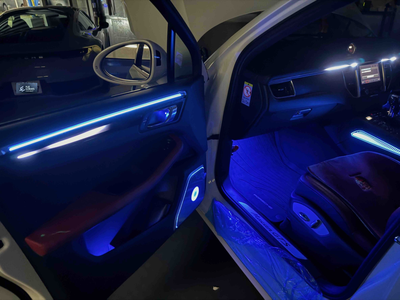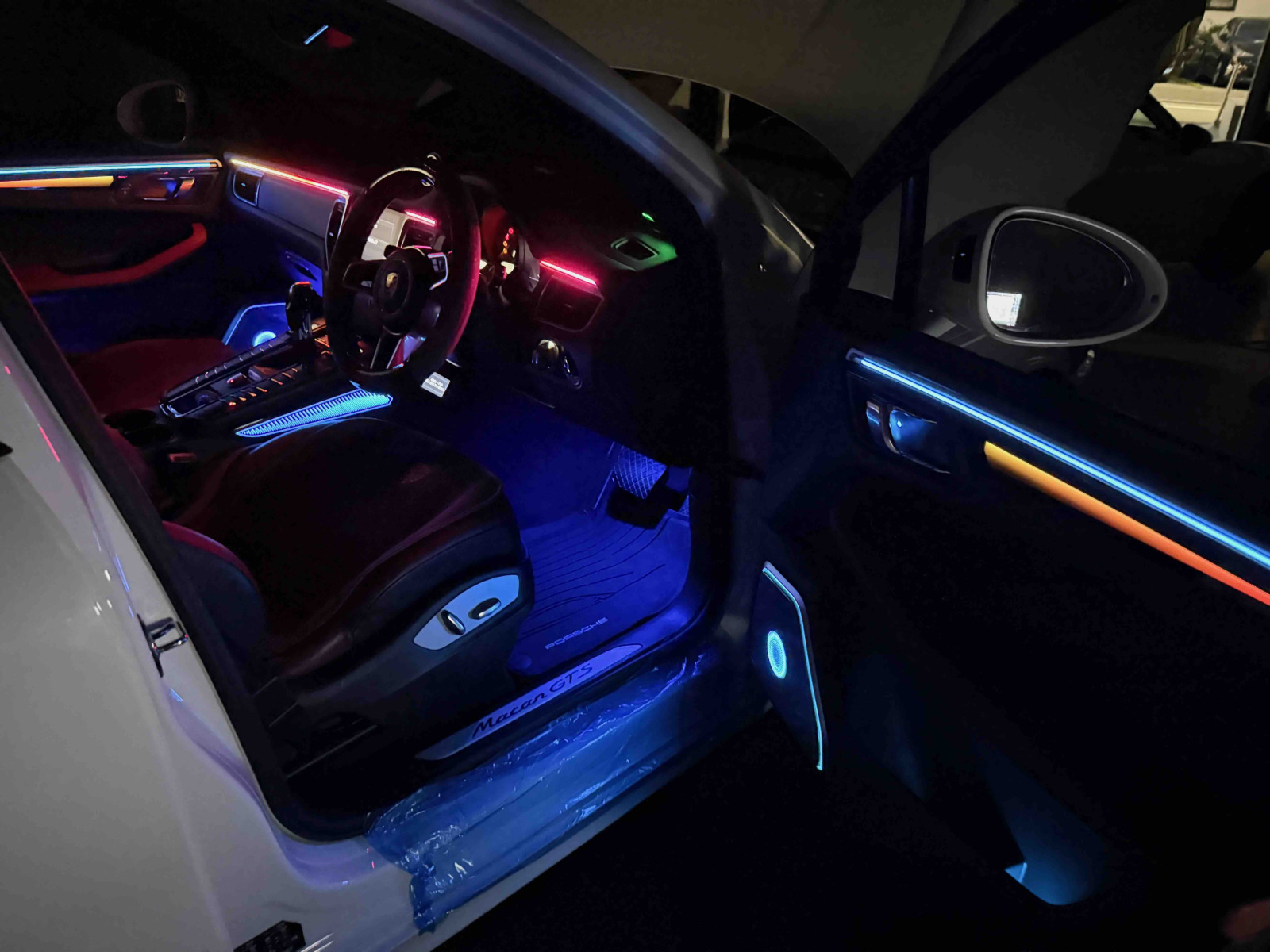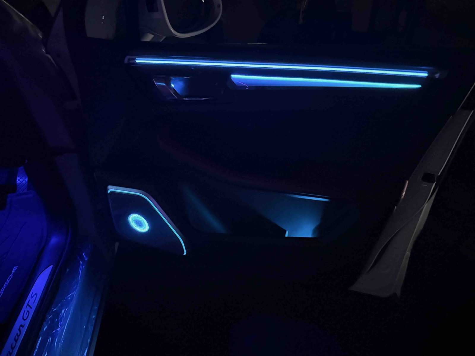 ポルシェ マカンGTS アンビエントライト後付け施工|ドア・センター・スピーカー連動|高輝度カスタム対応