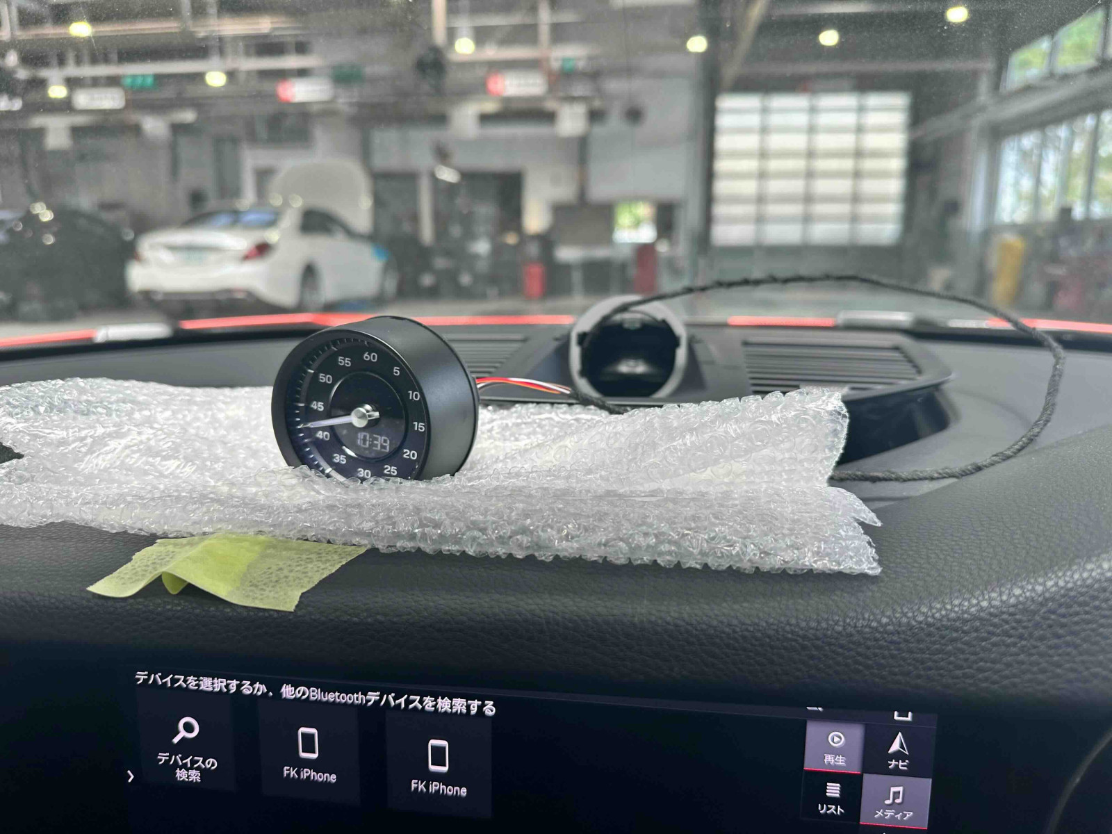 こちらもすでにスポーツクロノ時計の配線が終わり、時計機能の有効が確認しましたので、